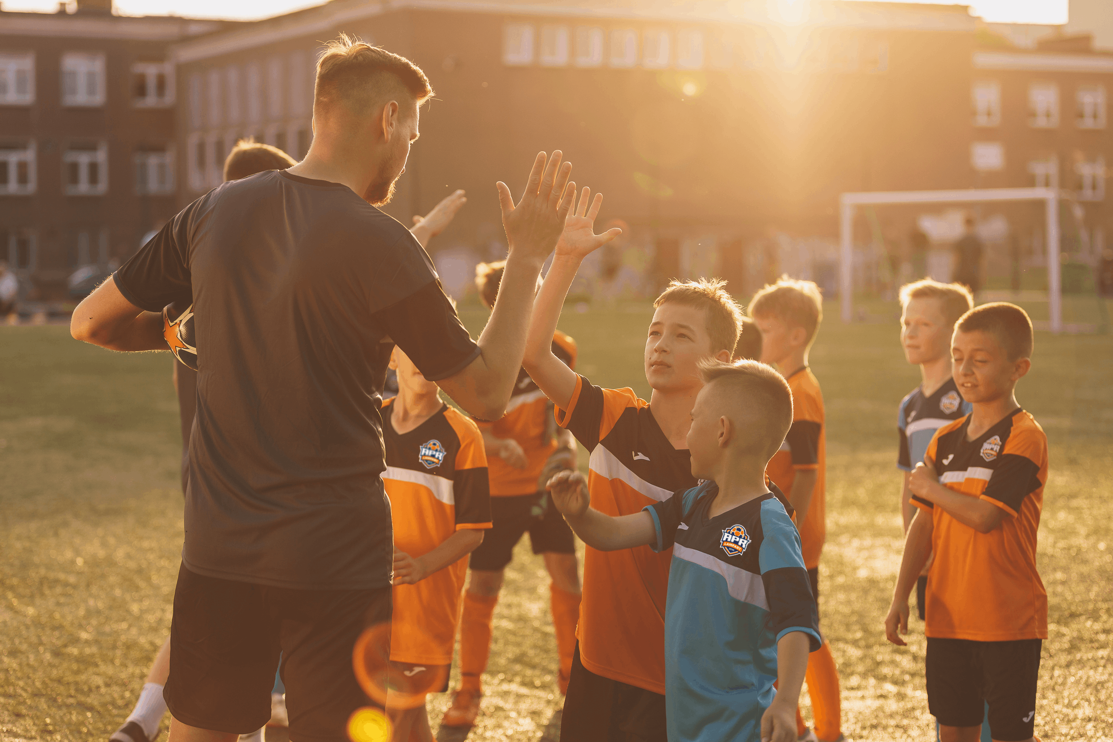 Nasi trenerzy przedstawiają nowego zawodnika pozostałym uczestnikom zajęć, po czym następuję klasyczne przybicie piątki! Nasi trenerzy dzielą się miłością do futbolu, aby każdy